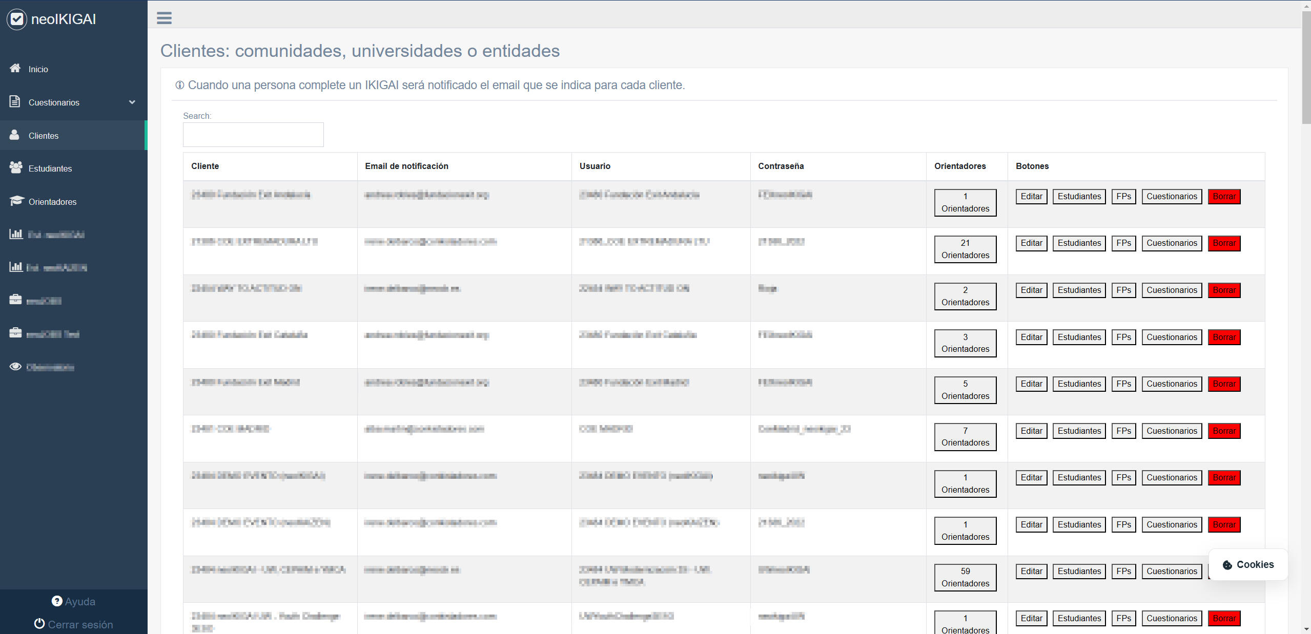 Aplicación parte de la suite de herramientas de neoCK, que tiene como propósito gestionar proyectos de diagnóstico de vocación e IKIGAI mediante el uso de cuestionarios, así como la generación de informes que permitan la orientación profesional de los usuarios.