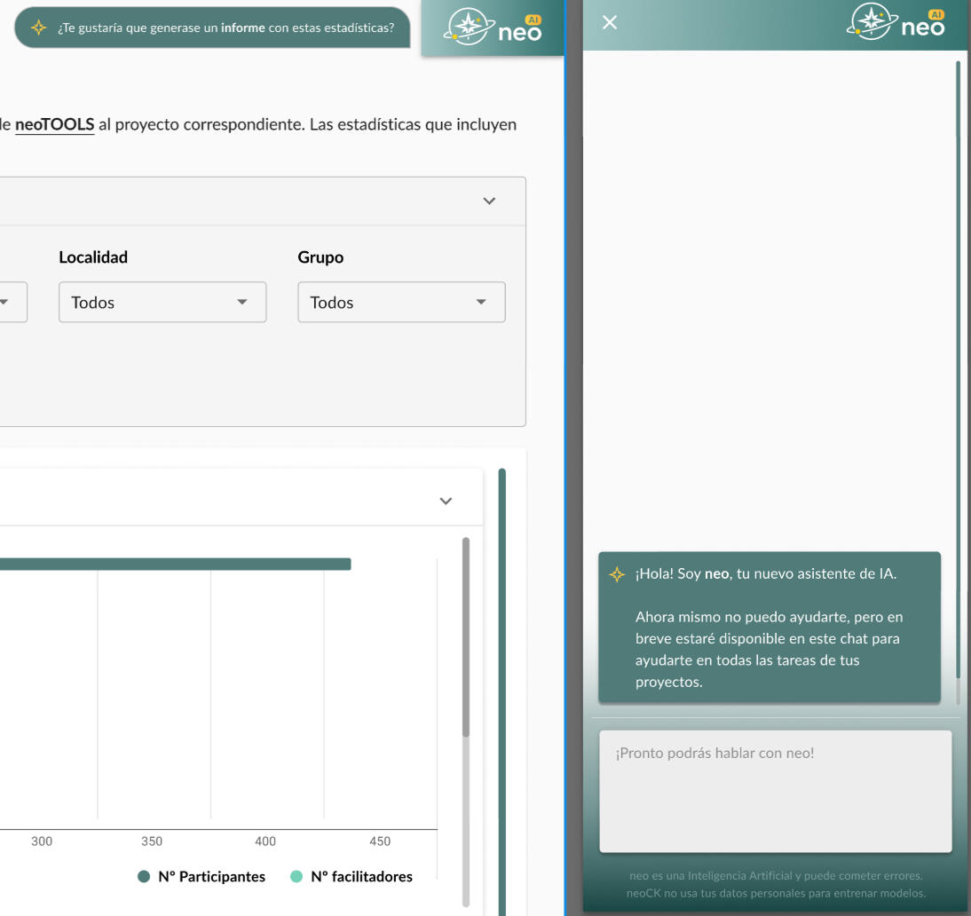 La optimización de la plataforma no solo mejoró su aspecto visual, sino también la eficiencia de su uso, la calidad de los datos extraídos de la experiencia y la variedad de nuevas funciones que permitieron, tanto a las personas responsables de llevar el seguimiento de los participantes como a los propios participantes, realizar todo el proceso en menor tiempo y con mayor facilidad.Tras realizar el prototipado se procedió al desarrollo de la plataforma, que ya está disponible para su uso. Los usuarios reportan una mejora de calidad de vida sustancial con respecto a la anterior versión, especialmente los administradores de la plataforma, que ahora pueden preparar los proyectos con mayor velocidad, generando proyectos de forma más efectiva.El desarrollo, eso sí, no finaliza aquí. Ya se ha planteado una versión 2.0 en la que se incluirán funciones de IA: un chatbot con IA conversacional que permitirá a los usuarios realizar múltiples solicitudes, dede la creación de informes que resuman las estadísticas y permitan la justificación de proyectos, hasta la creación de planes de estudio personalizados según la localización geográfica de los participantes.